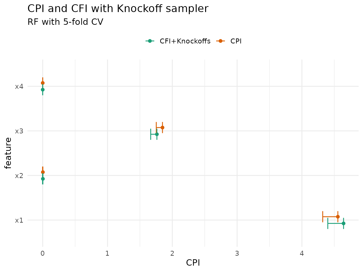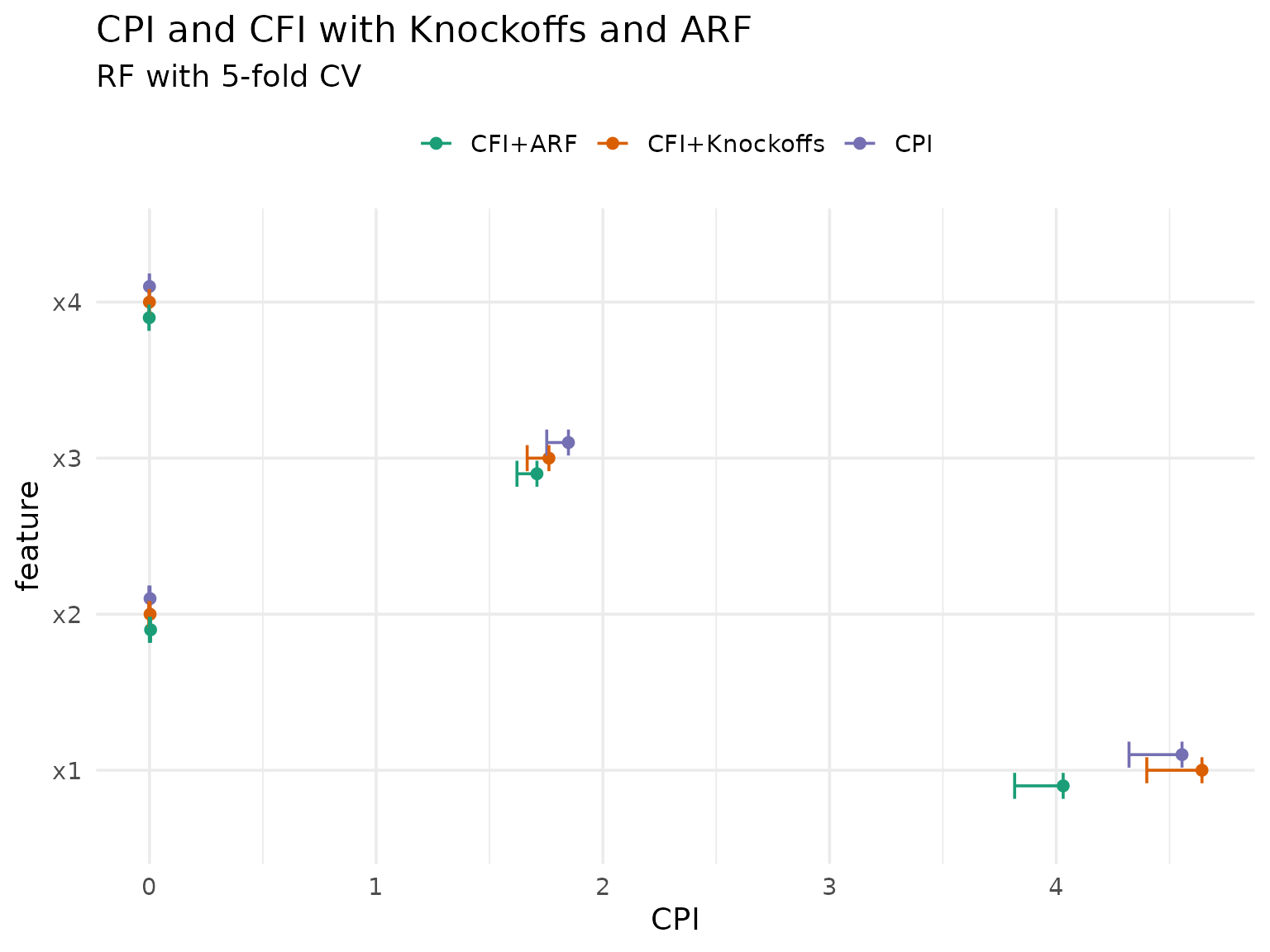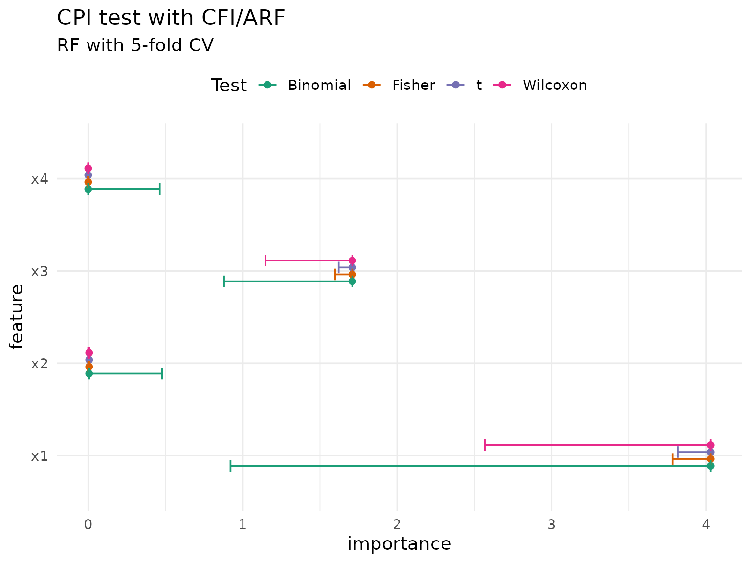 (cpi_res_fisher = cfi_arf$importance(ci_method = "cpi", test = "fisher", B = 1999))